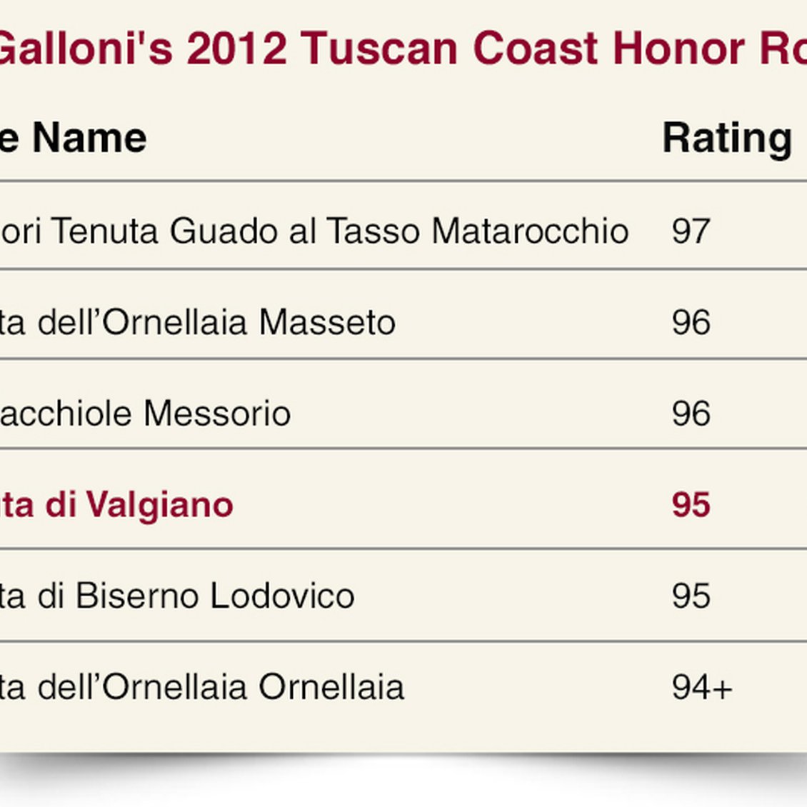 11 straight “3 Bicchieri” for Tuscan Bargain Red